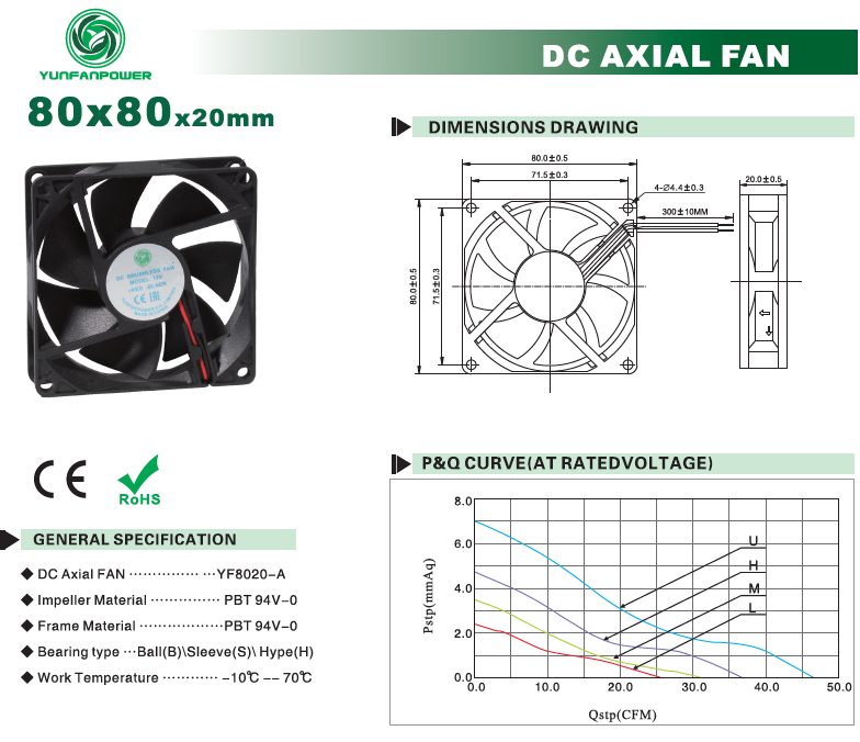 | YFD8020S12U | 5 | 0,3 | 3.6 | 4500 | 1,32 | 7 | 43,5 | ||
